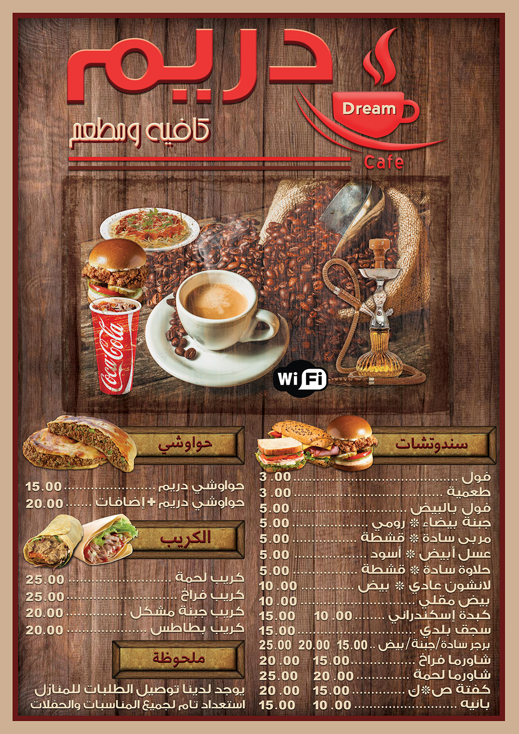 بروشور قائمة أسعار مينيو كافيه و مطعم دريم