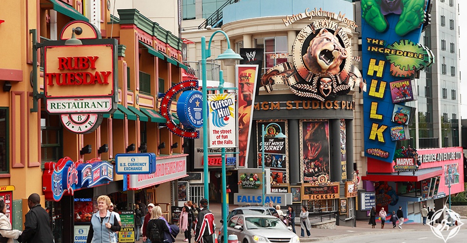 هذا الشارع الشهير بالقرب من شلالات نياجرا والمعروف باسم كليفتون هيل، عادة ما يوفر جوا رائعا من المرح يجذب الأطفال والشباب من جميع الأعمار، حيث بإمكانك اصطحاب أطفالك إلى هناك للاستمتاع والترفيه.